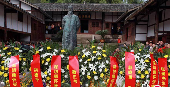成都畅然南下,南充逶迤北行,至荆溪蜿蜒取东约里许。丘山层障叠翠,修竹下履;龙珠椅然在握,篷莲上举。有一宅处,襟畦亩,带清渠;瞰九畹,仰田梯。庄重与典雅同著,古朴共方正唇依。乃民盟第一人张澜先生故里也。张澜字表方,西充人氏。耕读子弟,汉卿后人...